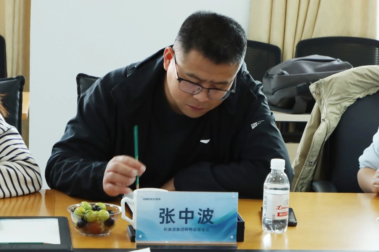 2025年11月5 日,山东和康源集团执行总裁褚新星、动保中心总经理汪建华、种鸡动保主任刘丹、商品鸭动保主任赵杰、种鸭动保主任张中波、产品评价主任许明清、集团中心实验室研发经理张晓宇及山东省农科院家禽所研究员李玉峰一行莅临信得参观交流。
