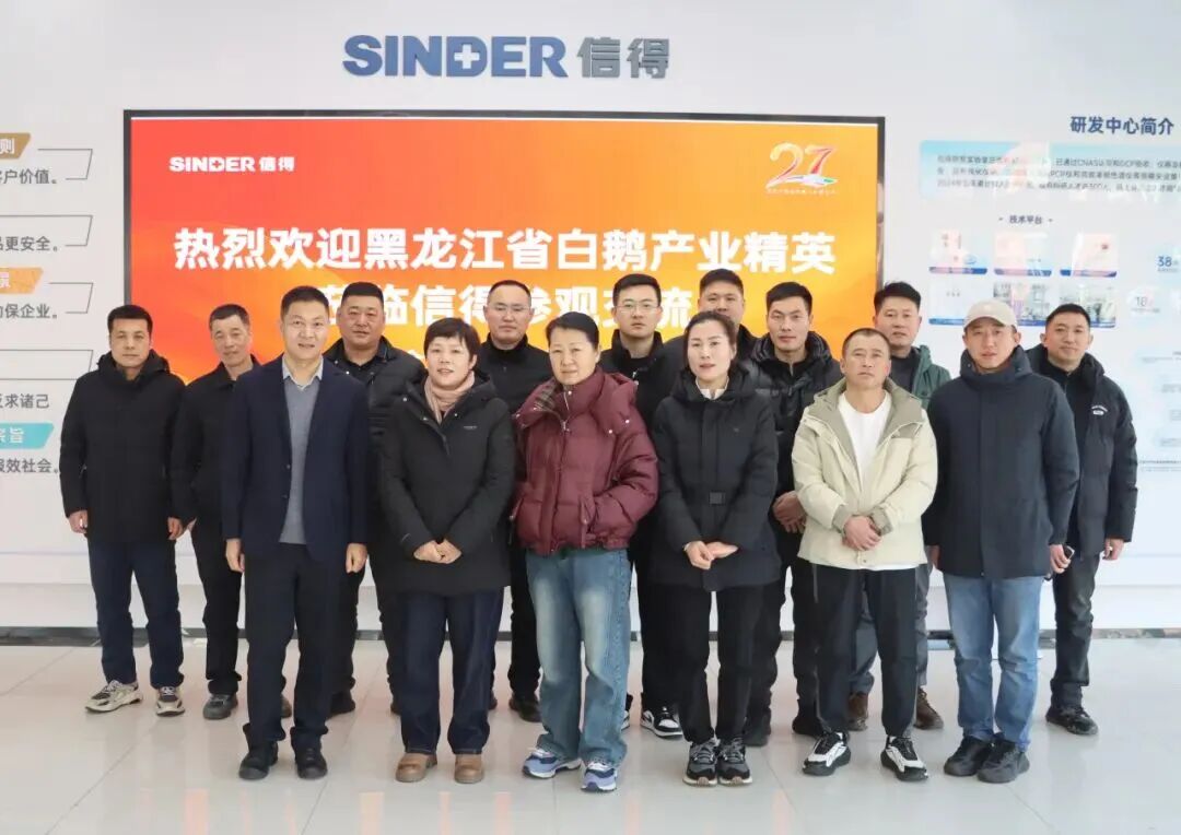 1月21-24日,黑龙江省鹅业协会执行会长、黑龙江省农科院畜牧研究所孙金艳研究员携黑龙江省牧彩牧业有限公司、绥滨县向天歌白鹅牧业有限公司、龙江县绿森种鹅养殖农民专业合作社等协会会员单位代表一行14人,莅临山东信得科技股份有限公司考察交流,旨在加强产学研合作,共同探索鹅健康养殖与疫病精准防控方案。