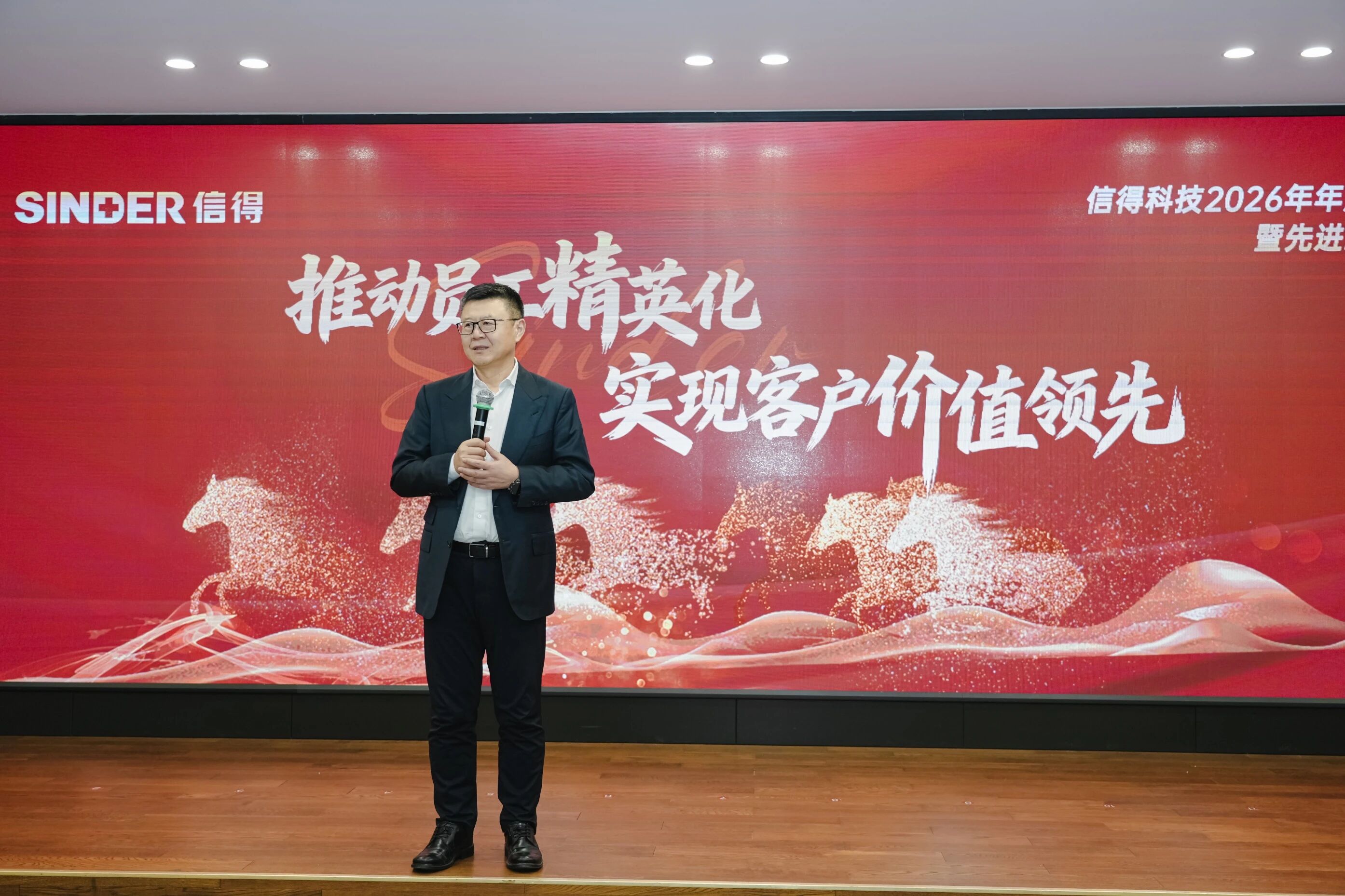 灵蛇辞旧岁,骏马启新程。2月13日,以“推动员工精英化,实现客户价值领先”为主题的信得科技2026年度工作会议在山东诸城圆满举行。信得科技董事长李朝阳先生与全体信得人通过“线上+线下”联动的方式齐聚一堂,共同回顾过去一年的奋斗历程,并围绕2026年发展目标凝聚共识。活动现场气氛热烈,歌声、掌声交织,凝聚成信得人同心同行、共启新程的坚定力量。