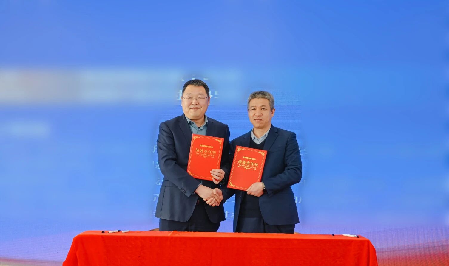 为确保 2026 年公司各项工作目标的顺利实现,年会现场举行了绩效责任状签订仪式。每一份责任书的签订,都意味着一份责任的落实,一份使命的担当。全体信得人将以此为新的起点,锚定目标,笃行实干,全力以赴完成各项工作任务。