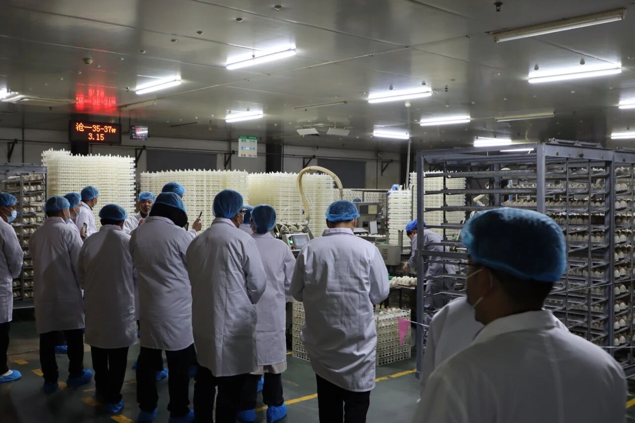 3月18日,与会嘉宾实地参观了和康源孵化场。在工作人员引导下,嘉宾们观摩了从种蛋分选、孵化调控到雏鸭处理的全流程作业,详细了解了和康源在种鸭养殖管理、孵化工艺控制、生物安全防护等环节的标准与操作规范。通过现场交流与观察,嘉宾对种商一体化的具体实施路径获得了更直观的认识。