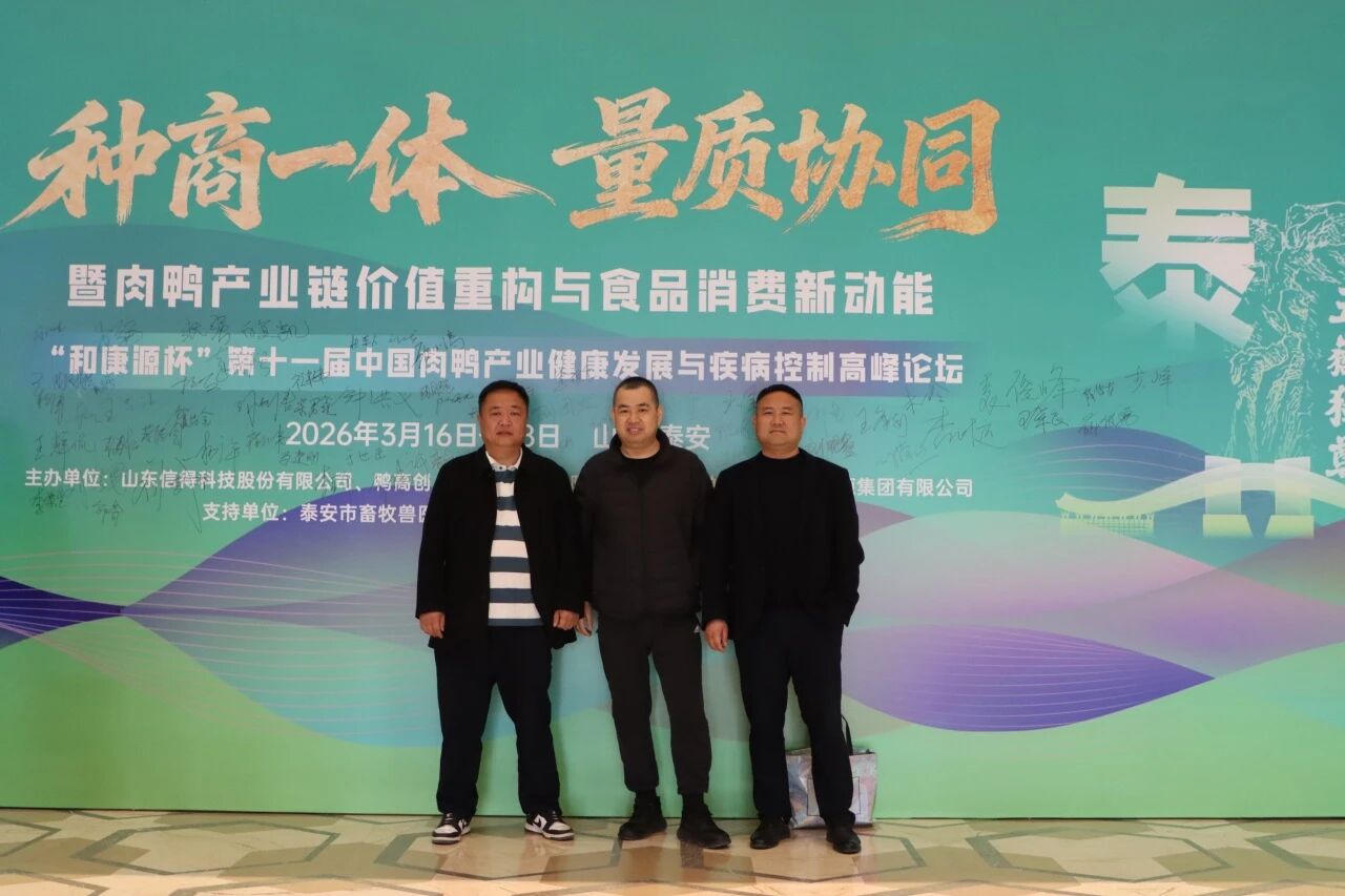 3月16日至18日,由山东信得科技股份有限公司、禽高创(山东)咨询有限公司主办,山东和康源集团有限公司协办的“和康源杯”第十一届中国肉鸭产业健康发展与疾病控制高峰论坛在山东泰安圆满举行。