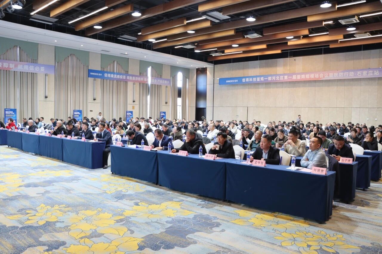 近日,信得科技蛋鸡一部河北区第一届蛋鸡规模场会议暨秋防行动在石家庄顺利举办。华裕农业科技有限公司营销部副总裁王亚涛、技术服务部负责人刘恒攀,山东农业大学赵鹏教授,成都小巨人畜牧设备有限公司产品经理文家超,山东信得科技股份有限公司副总裁闵祥平、蛋鸡解决方案部部长刘丰欣,禽流感/鼻炎解决方案经理孟令旭、产品技术经理石子虎、霍木宝及青年鸡规模场负责人、技术管理人员等200余人参与。
