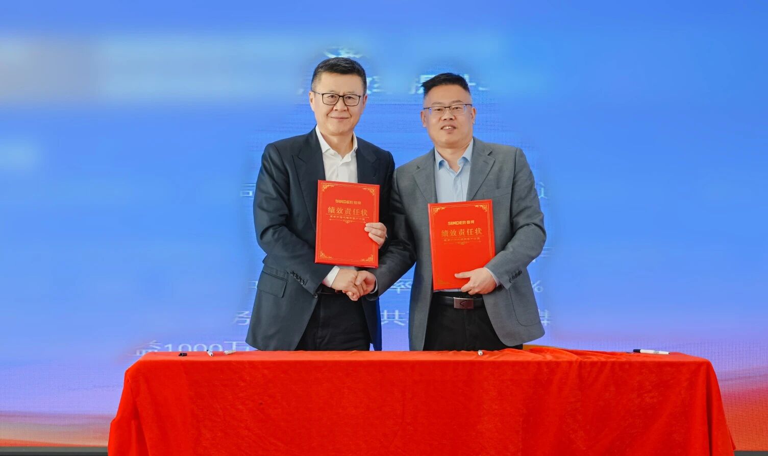 为确保 2026 年公司各项工作目标的顺利实现,年会现场举行了绩效责任状签订仪式。每一份责任书的签订,都意味着一份责任的落实,一份使命的担当。全体信得人将以此为新的起点,锚定目标,笃行实干,全力以赴完成各项工作任务。